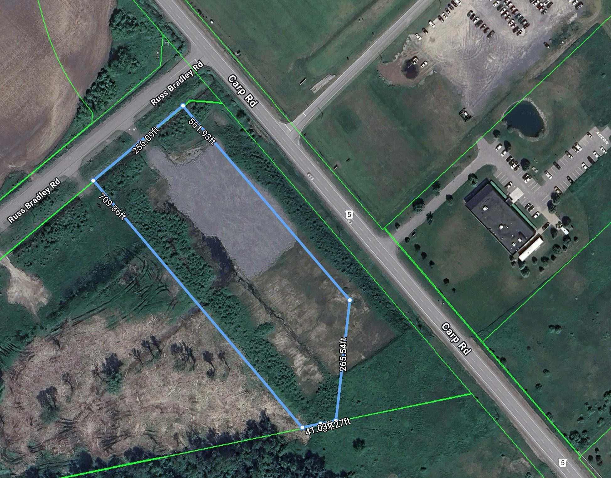 6 ACRE Commercial Industrial CORNER LOT along high traffic Carp Road Industrial Corridor. Next to Carp Airport with excellent access to Highway 417, 5 minutes from Kanata. The properties are suitable for aeronautics, technology, business services, wholesale, industrial, manufacturing and commercial. Features a drilled, Natural gas, electricity, paved road, top soil removed, rock/gravel base, culvert and water supply for fire suppression. Possible VTB. |